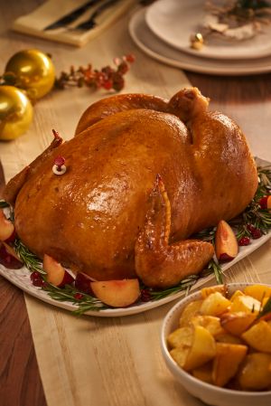 - Verifique o termômetro. Quando ele saltar, a ave estará pronta.
