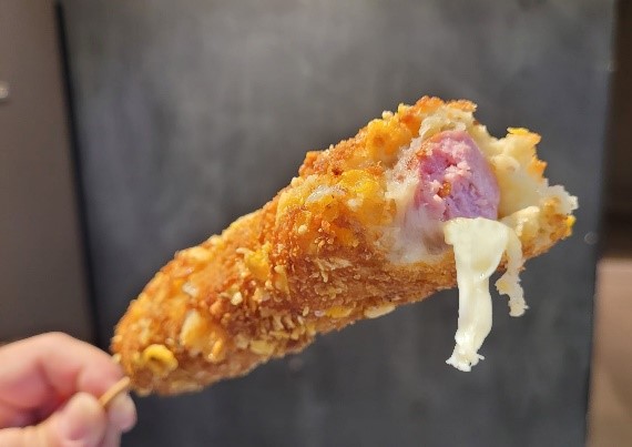 NESTE ANO, A PROMESSA VAI AINDA MAIS LONGE: COREIA! CORN Dog é o nome de uma das comidas de rua mais populares da Coreia. Conhecido como Hotdog Coreano ou Hotdog no Palito, na versão bragantina, um espeto de linguiça e queijo é envolvido em uma massa e empanado com farinha panko e corn flakes, trazendo crocância e muito sabor.