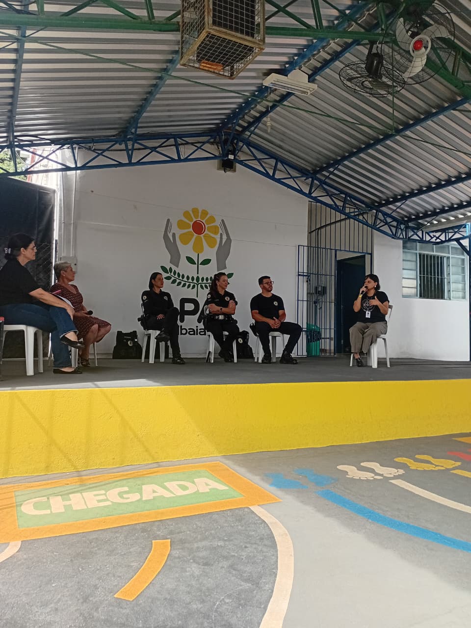 Ao final, a GCM Martins apresentou o aplicativo SOS Maria da Penha, que, quando acionado, realiza uma interface imediata com a Guarda Civil Municipal, mobilizando toda a estrutura de prevenção.