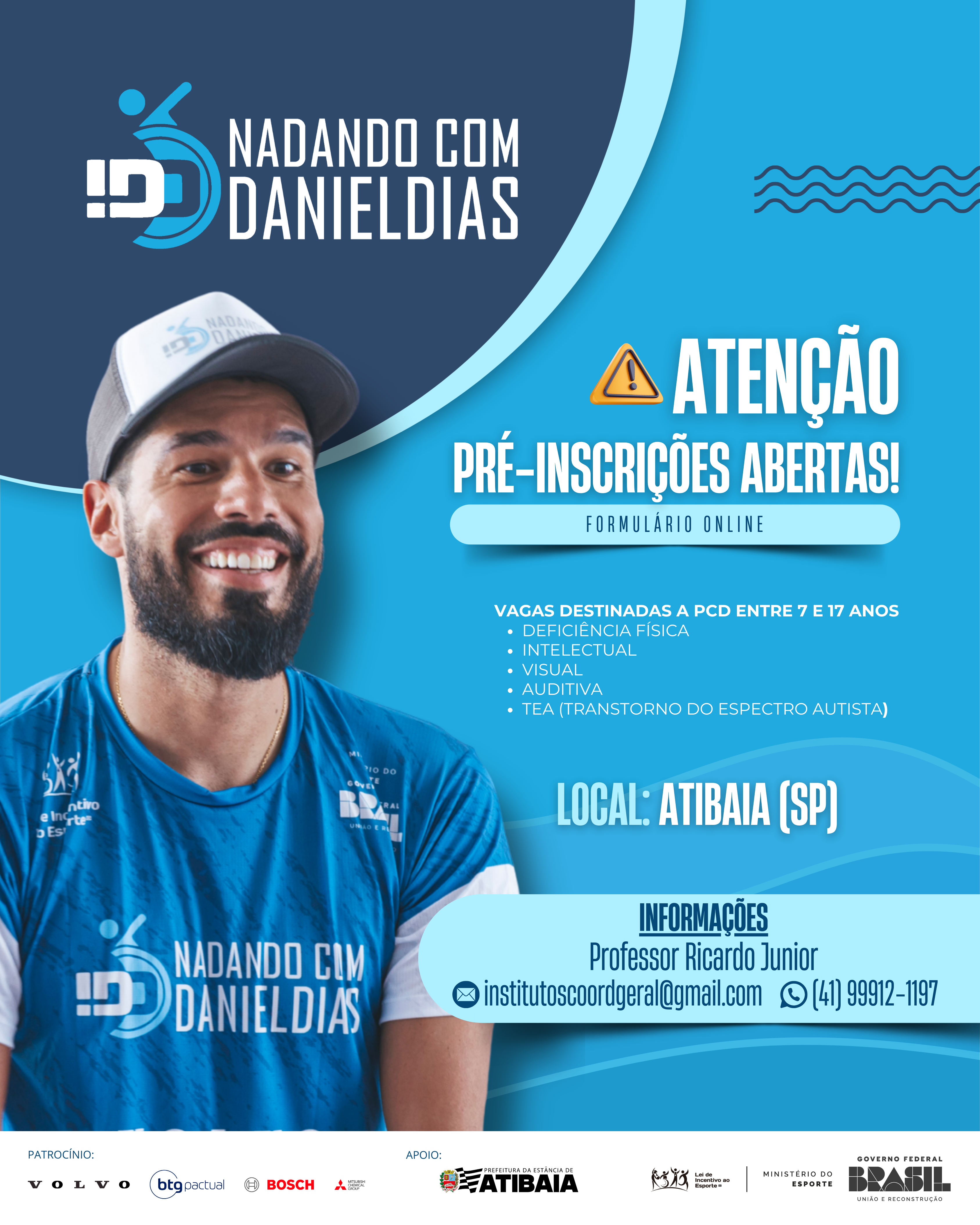 "É uma alegria enorme poder voltar com o projeto Nadando com Daniel Dias em Atibaia, uma cidade que carrego no coração e onde já tive a honra de atuar como secretário de esportes. É também aqui que teremos nossa sede fixa do Instituto, tornando realidade um sonho que começou em 2014. Estou muito empolgado em ver que o projeto foi tão abraçado pela comunidade e, principalmente, em atender a um pedido constante de mães que nos procuravam nas redes sociais pedindo a volta das aulas. Hoje, estamos prontos para escrever um novo capítulo de inclusão, oportunidades e transformação para nossas crianças e jovens", comenta o padrinho multicampeão paralímpico, Daniel Dias.
