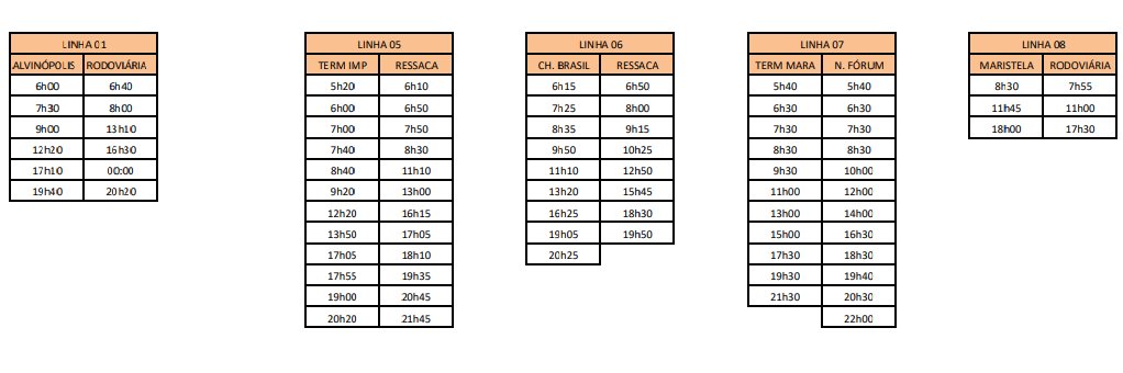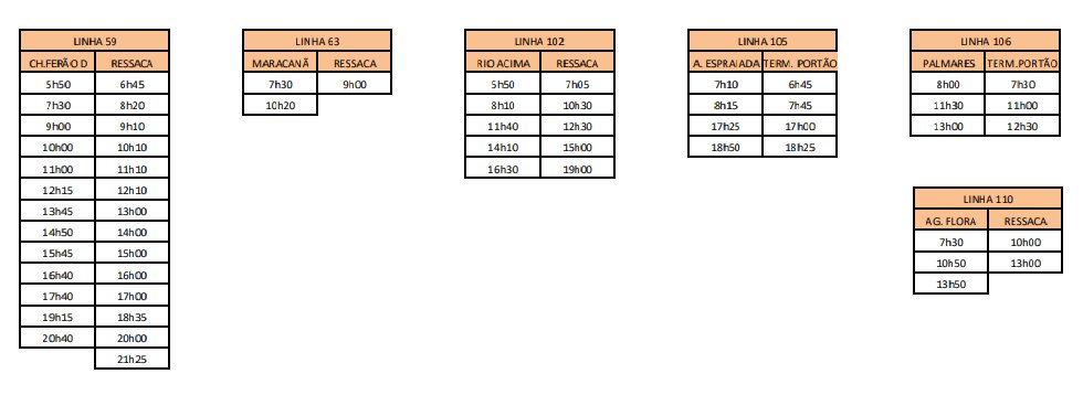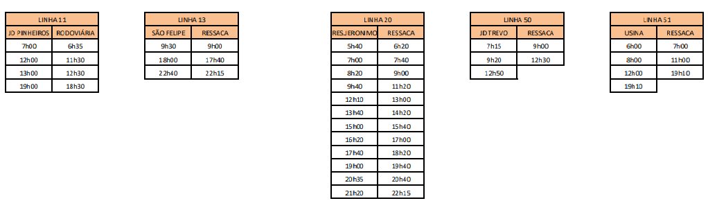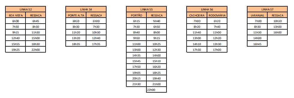 A tabela com os horários especiais e linhas que terão reforço no transporte estão disponíveis nas tabelas abaixo: